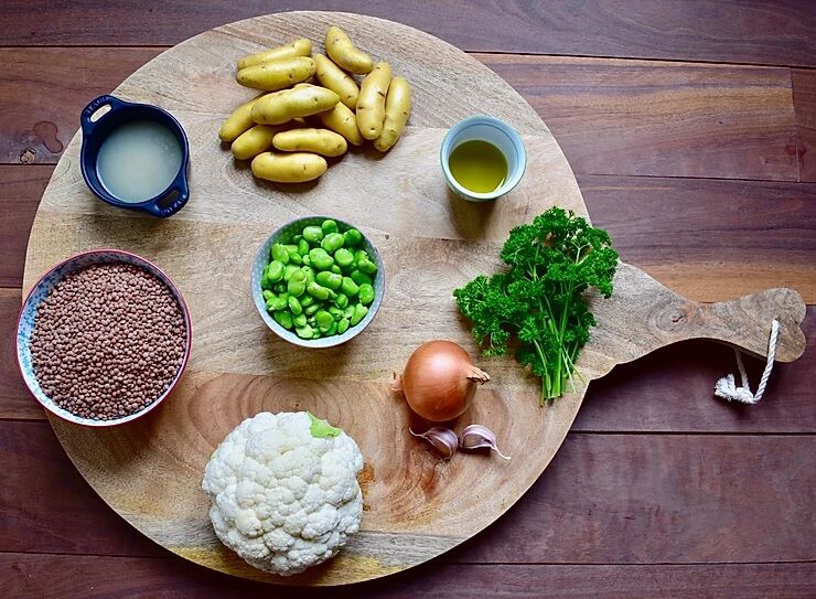 - Add broad beans, and potatoes mix well until broad beans are hot.