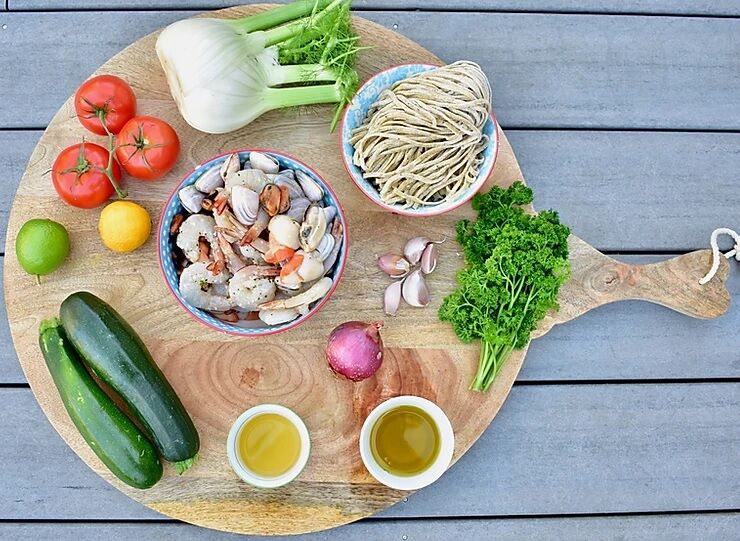 For this marinara pasta to be wholesome, I went big on the vegetables base, and to really make it tasty I used heaps of parsley, garlic, and added some white wine. You can buy your favourite marinara mix from your fishmonger or supermarket. If you child hasn’t had shellfish yet, this can be an opportunity to expand their horizon. Take them to the market, pick a few prawns, some pipis, some squid, some scallop.