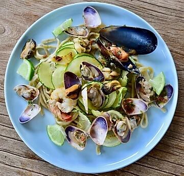 - Marinara mix: 750g (here prawns, pipis, scallops, mussels, and a squirrel tube I chargrilled).